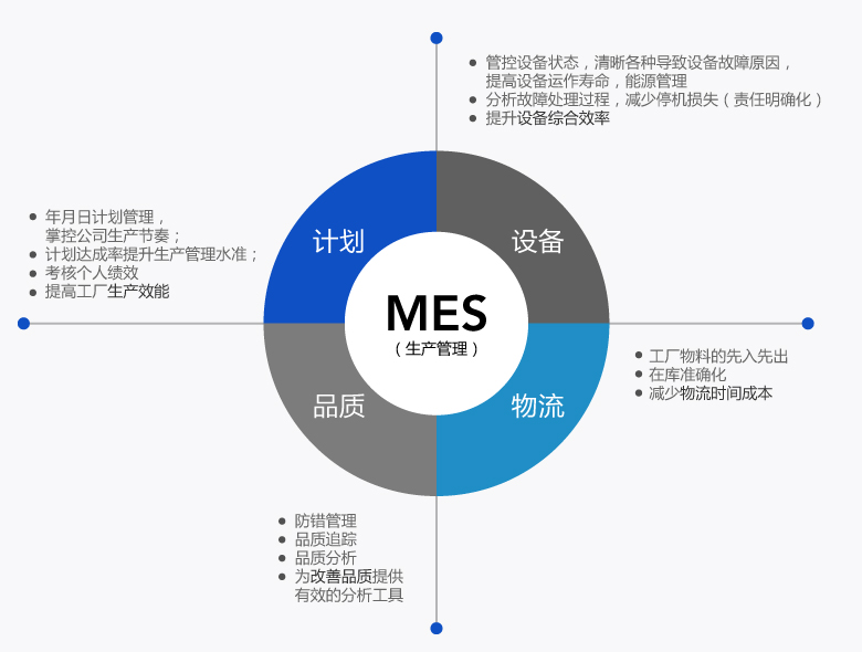 管理生產(chǎn)活動的所有行為,包含 生產(chǎn)計(jì)劃,生產(chǎn)實(shí)績,生產(chǎn)工藝,品質(zhì)管理,品質(zhì)追蹤,設(shè)備管理,倉儲管理,能源管理等;