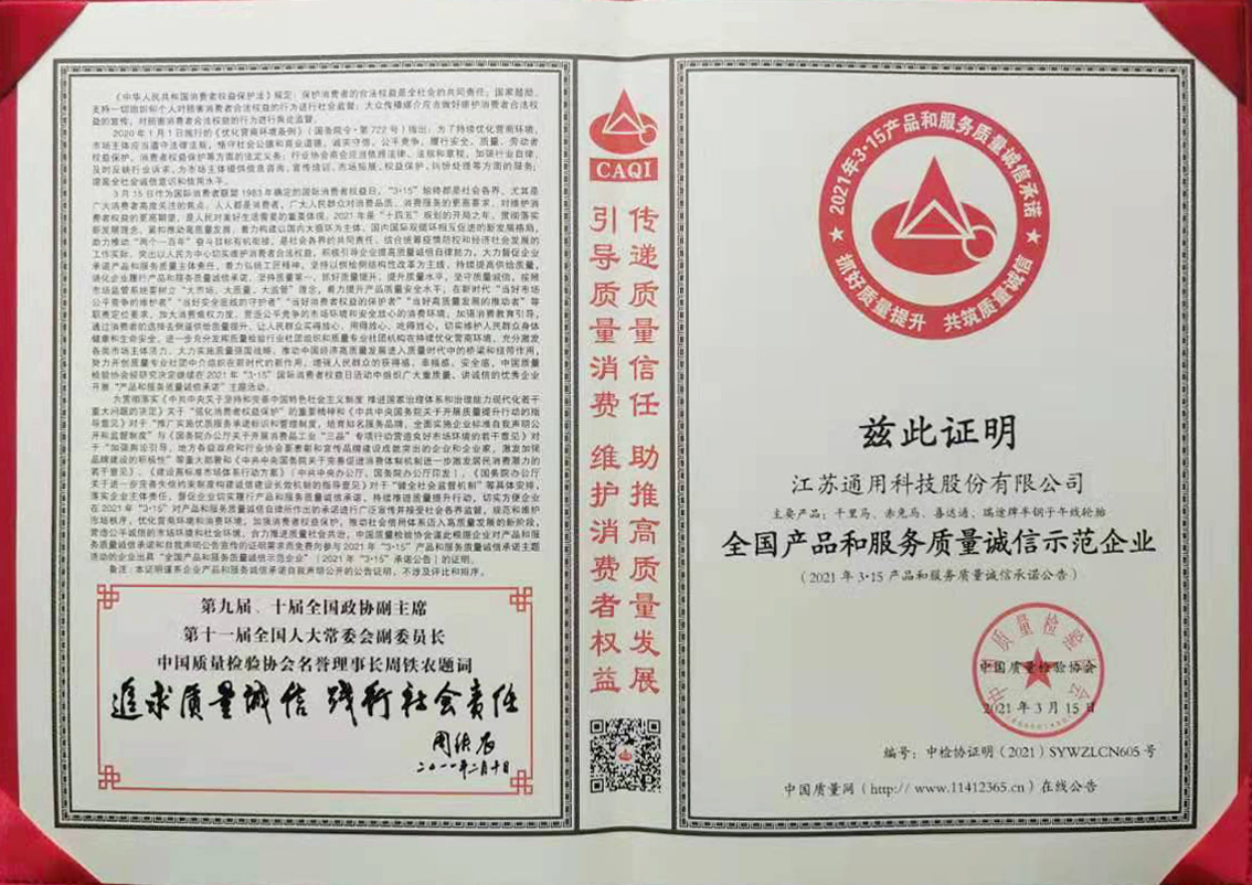 近日,在由中國質(zhì)量檢驗協(xié)會主辦的2021年3·15國際消費者權(quán)益日產(chǎn)品和服務(wù)質(zhì)量誠信承諾主題活動中,通用股份憑借優(yōu)質(zhì)的產(chǎn)品性能、穩(wěn)