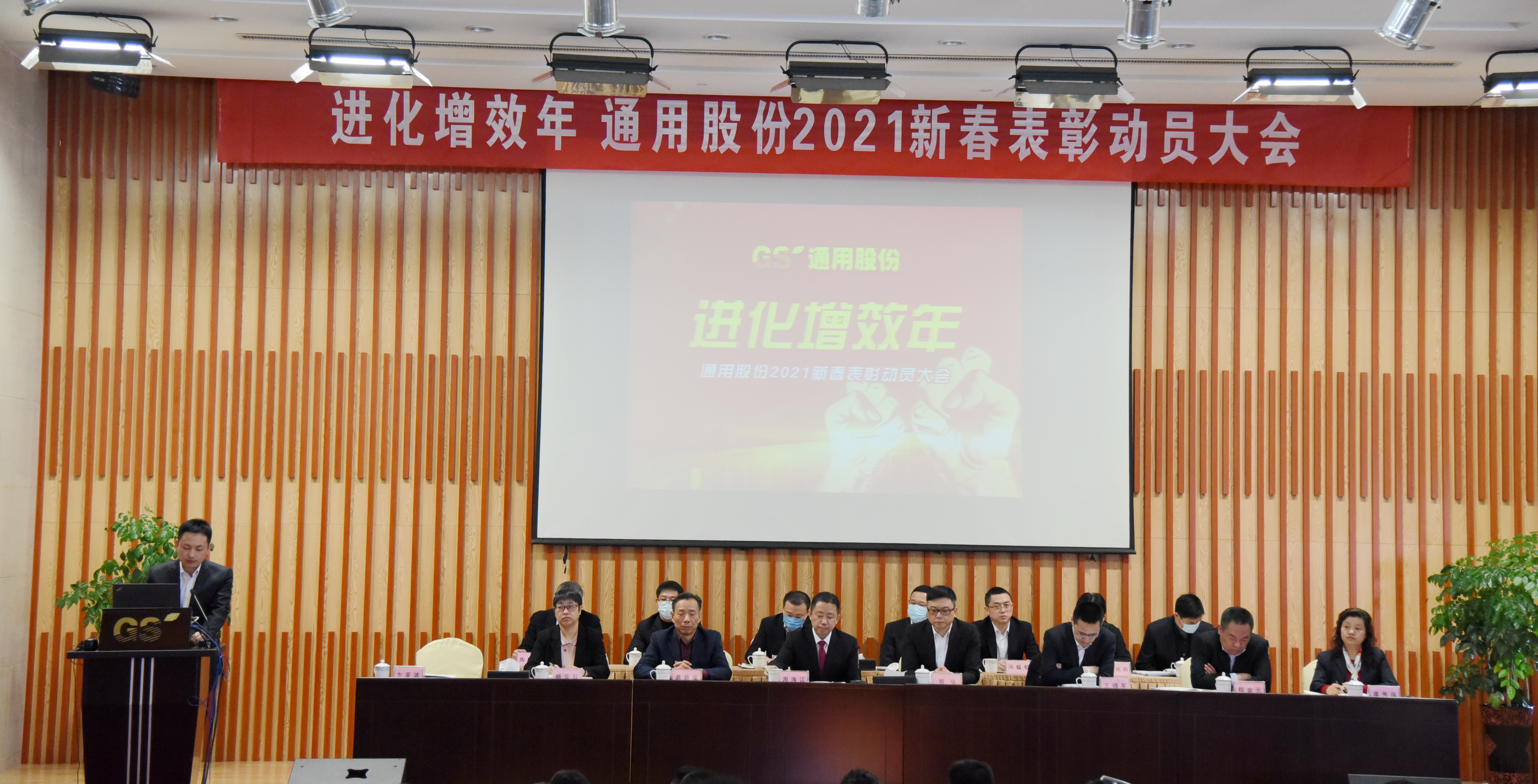 2月20日,通用股份隆重召開進化增效年2021新春表彰動員大會,深入總結了2020年的工作成果,同時對2021年各項工作進行了動員和部署。紅