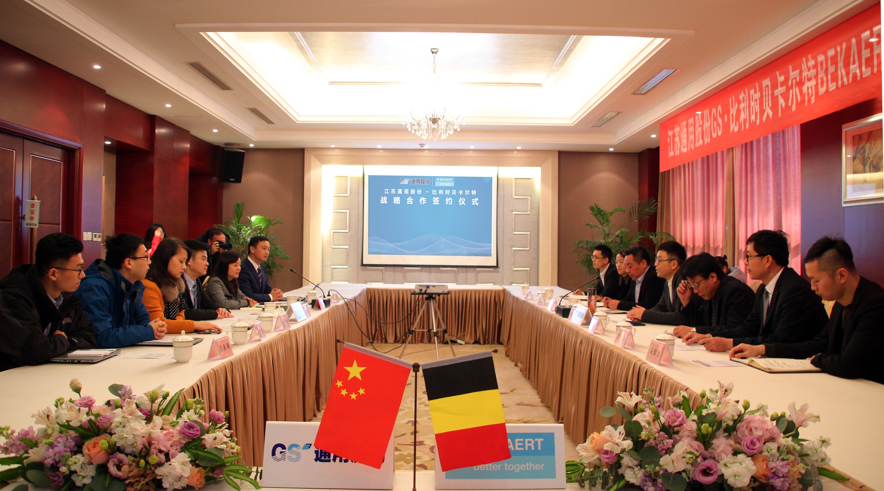 1月21日,通用股份與比利時(shí)貝卡爾特鋼簾線簽署深化戰(zhàn)略合作協(xié)議。通用股份董事長顧萃、常務(wù)副總經(jīng)理程金元,貝卡爾特北亞區(qū)商務(wù)總經(jīng)