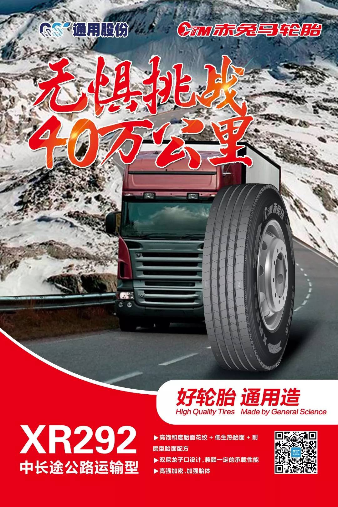 通用股份作為中國卡車輪胎替換市場的領軍企業之一,通過多年耕耘,憑借產學研一體的強大研發實力不斷推陳出新,推出了千里馬5X266、赤兔馬XR292、通運ZR230等一系列高端產品。