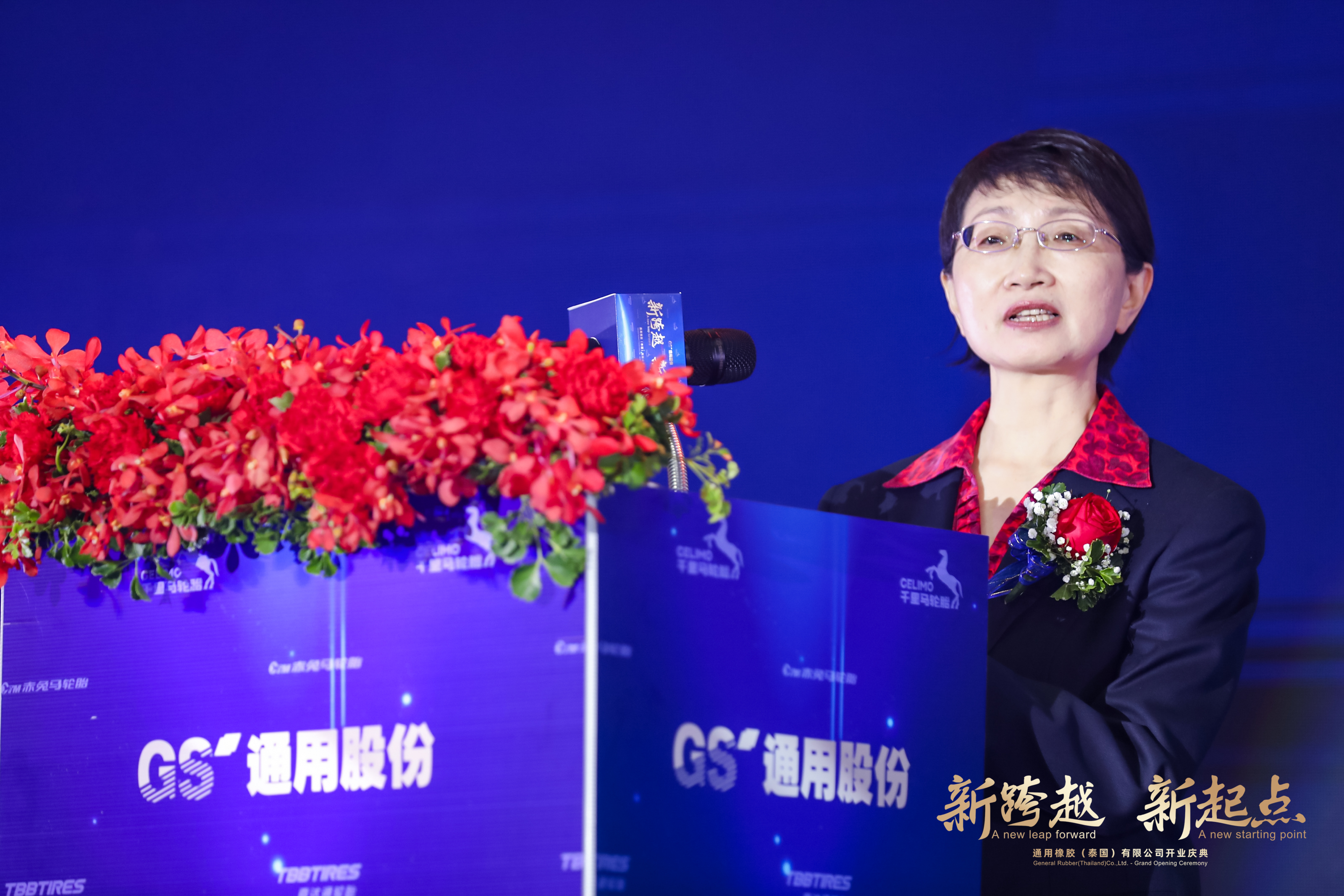 慶典上,中國橡膠工業協會會長鄧雅俐發表講話,她說道,通用股份泰國公司的開業,標志著通用股份提升國際化發展水平,優化產業布局邁出了重要步伐。這不僅是通用股份發展史上的重要里程碑,也是中國橡膠工業的一件大喜事。相信通用股份能夠繼續以綠色智能,科技創新為導向,提質增效、銳意進取,用高端化、綠色化、高性能、高附加值的產品回饋全球用戶,不斷提升企業品牌在國際市場上的知名度與美譽度,為社會經濟的發展,為中國橡膠行業的發展作出新的更大的貢獻!