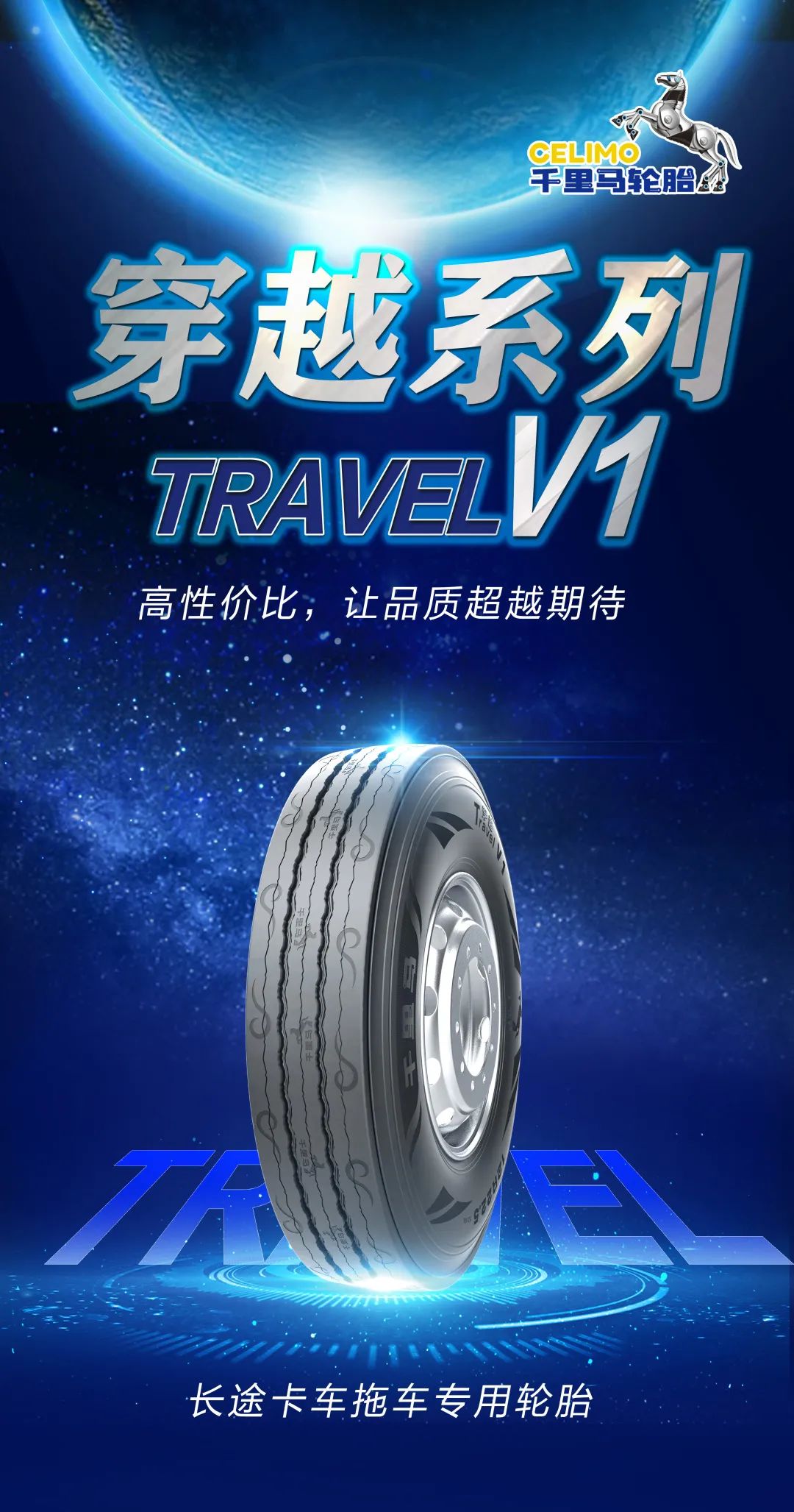 性能強悍的同時,穿越V1在外觀設(shè)計上也是獨具匠心。胎側(cè)曲線組成勝利“V”托舉著“千里馬”,象征王者歸來,“火箭”的頂端屹立著“千里馬”,寓意夢想穿越。同時,胎面設(shè)計中不僅有千里馬品牌標志,還融入中國傳統(tǒng)“祥云”元素,意為馬踏祥云,向司機用戶傳達吉祥如意、蒸蒸日上的美好祝愿。無論是性能,還是顏值,穿越V1 都十分給力。