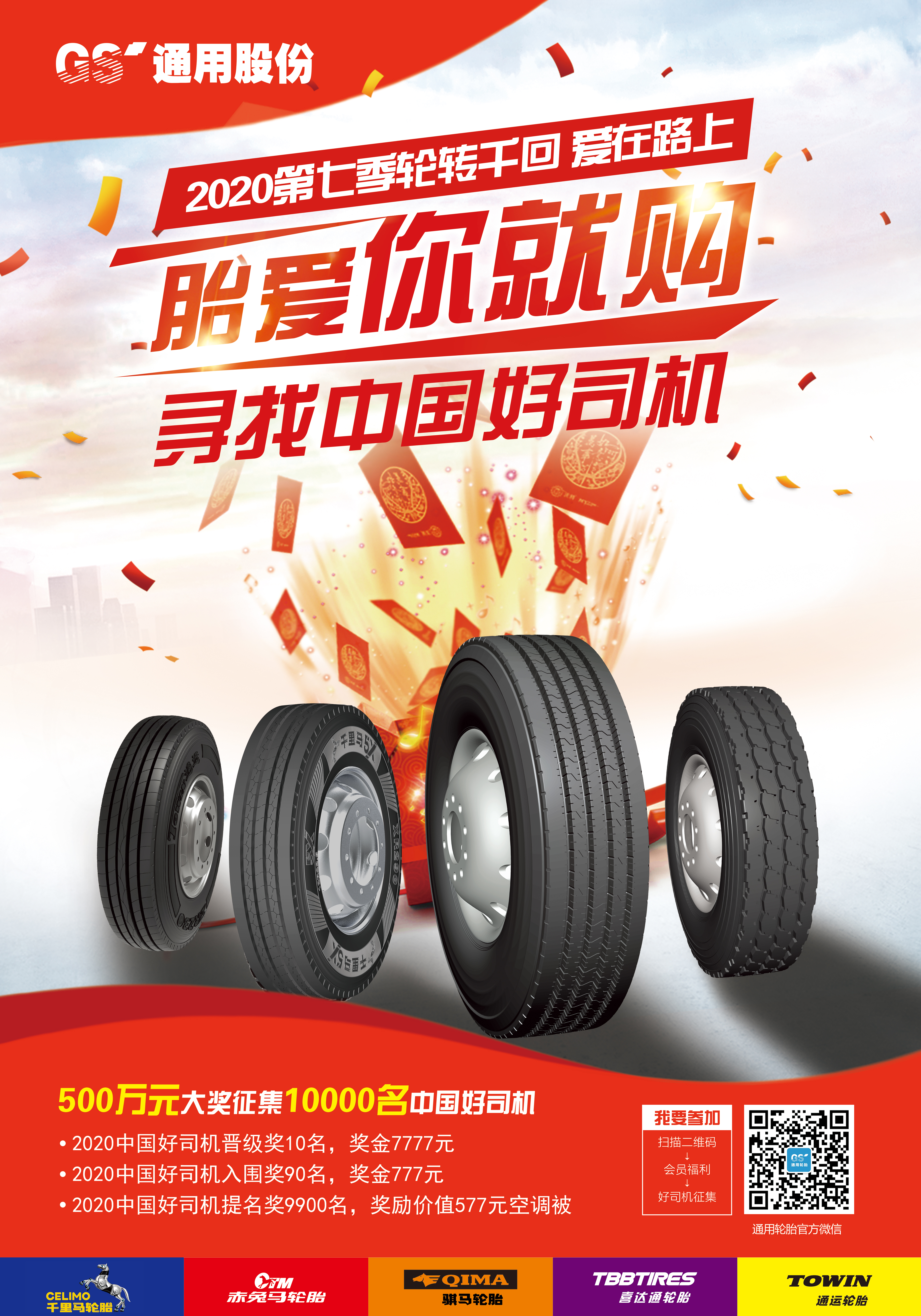 有一群人,他們長期奔波在外,清晨,深夜,無論何時,他們都在道路上馳騁,漫漫長路,讓他們不僅經常與家人分離,還與孤獨相處,他們就是中國3000萬卡車司機。本次“胎愛你就購”七夕紅粉季,為了走近卡車人的生活,了解他們生活的悲歡喜樂,展示中國卡車司機的正能量,在優惠回饋的基礎上,通用股份福利再升級,重磅推出“尋找中國好司機”活動,為中國卡車司機提供展示自我風采的舞臺,不僅有機會獲得精美好禮,最高還能贏得7777元現金大獎。