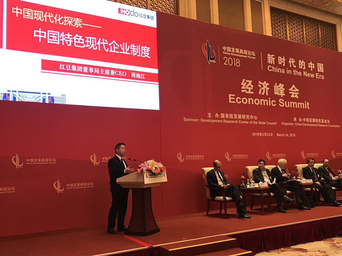 “中國共產黨與中國現代化”分組會是本次論壇的亮點之一,由人民網總裁葉蓁蓁主持,中央黨史和文獻研究院院務委員陳晉、劍橋大學教授彼得•諾蘭、新加坡國立大學教授鄭永年、紅豆集團董事局主席兼CEO周海江等領導專家作了交流發言。周海江結合紅豆集團多年來探索實踐的《中國特色現代企業制度》,與中外嘉賓分享了企業黨建與中國現代化的關系。