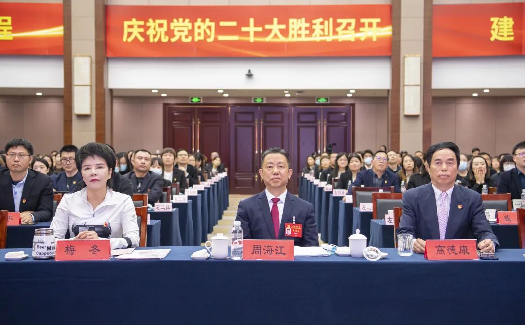 會(huì)上,周海江從黨的二十大會(huì)議盛況、二十大報(bào)告主要內(nèi)容及深入學(xué)習(xí)貫徹落實(shí)黨的二十大精神等多個(gè)方面為波司登全體黨員作了深入的解讀,并列舉剖析了黨的二十大報(bào)告中的一系列新專題、新論斷、新提法,同時(shí)結(jié)合紅豆集團(tuán)工作實(shí)際,分享了民營企業(yè)學(xué)習(xí)貫徹落實(shí)黨的二十大精神的特色做法和經(jīng)驗(yàn)舉措,給波司登全體黨員作了一個(gè)生動(dòng)、深刻的報(bào)告,贏得了全場(chǎng)共鳴。