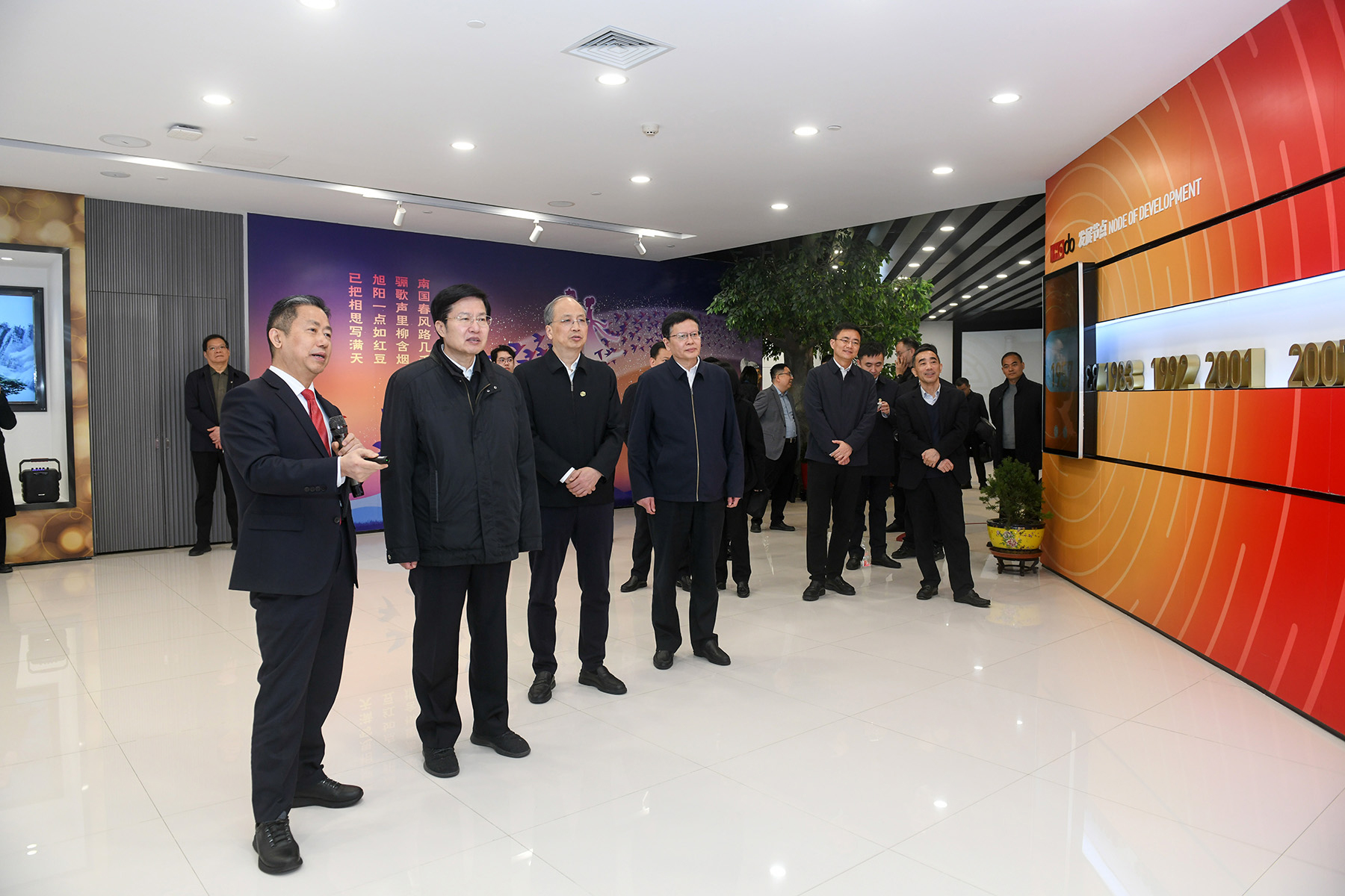 在紅豆集團(tuán)展廳,無錫市工商聯(lián)主席、紅豆集團(tuán)黨委書記、董事局主席周海江介紹了集團(tuán)“三代領(lǐng)頭人”創(chuàng)業(yè)接力的傳承故事、“三自六化”發(fā)展戰(zhàn)略和68年來“聽黨話、跟黨走”,堅(jiān)守實(shí)體經(jīng)濟(jì),聚焦發(fā)展服裝、輪胎和制藥三個(gè)產(chǎn)業(yè)所取得的成績(jī)。周海江介紹說,黨和政府一直關(guān)心支持民營(yíng)經(jīng)濟(jì)發(fā)展,紅豆未來將繼續(xù)堅(jiān)持“堅(jiān)定不移聽黨話、跟黨走,走正道、走大道”,以高質(zhì)量黨建引領(lǐng)企業(yè)高質(zhì)量發(fā)展。將堅(jiān)持干字當(dāng)頭,增強(qiáng)信心,迎難而上,奮發(fā)有為,向“新”而行,向“高”攀登。周海江還詳細(xì)介紹了紅豆集團(tuán)在柬埔寨主導(dǎo)開發(fā)建設(shè)的西哈努克港經(jīng)濟(jì)特區(qū)發(fā)展情況以及紅豆堅(jiān)持八方共贏、積極踐行社會(huì)責(zé)任的具體舉措。