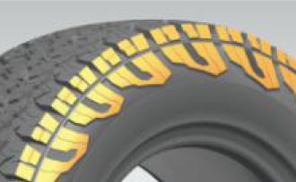 增強(qiáng)型輪胎結(jié)構(gòu),多層胎體骨架材料共同作用通過(guò)計(jì)算機(jī)仿真優(yōu)化,提升輪胎強(qiáng)度及通過(guò)性能;